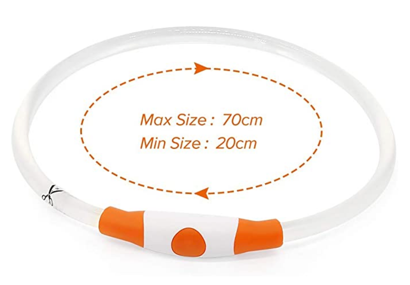 EASY TO CUSTOMIZE: Each collar measures 28 inches out-of-the-box. Simply trim the LED tube with a pair of scissors or knife (single cut) to fit your dog's neck perfectly.